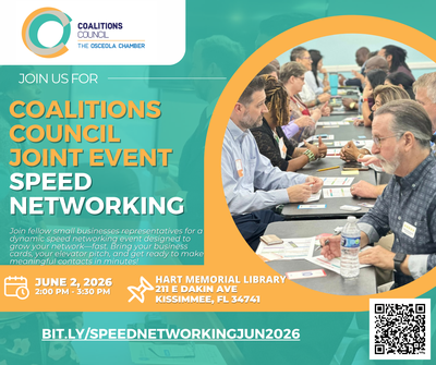 Be prepared to network this summer!  We are bringing members of our seven coalitions together for a round of speed networking! Join fellow small businesses representatives for a dynamic speed networking event designed to spark connections, share opportunities, and grow your network—fast. Bring your business cards, your elevator pitch, and get ready to make meaningful contacts in minutes!