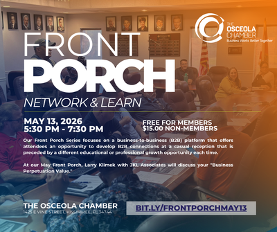 At our May Front Porch, Larry Klimek with JKL Associates will discuss your "Business Perpetuation Value."